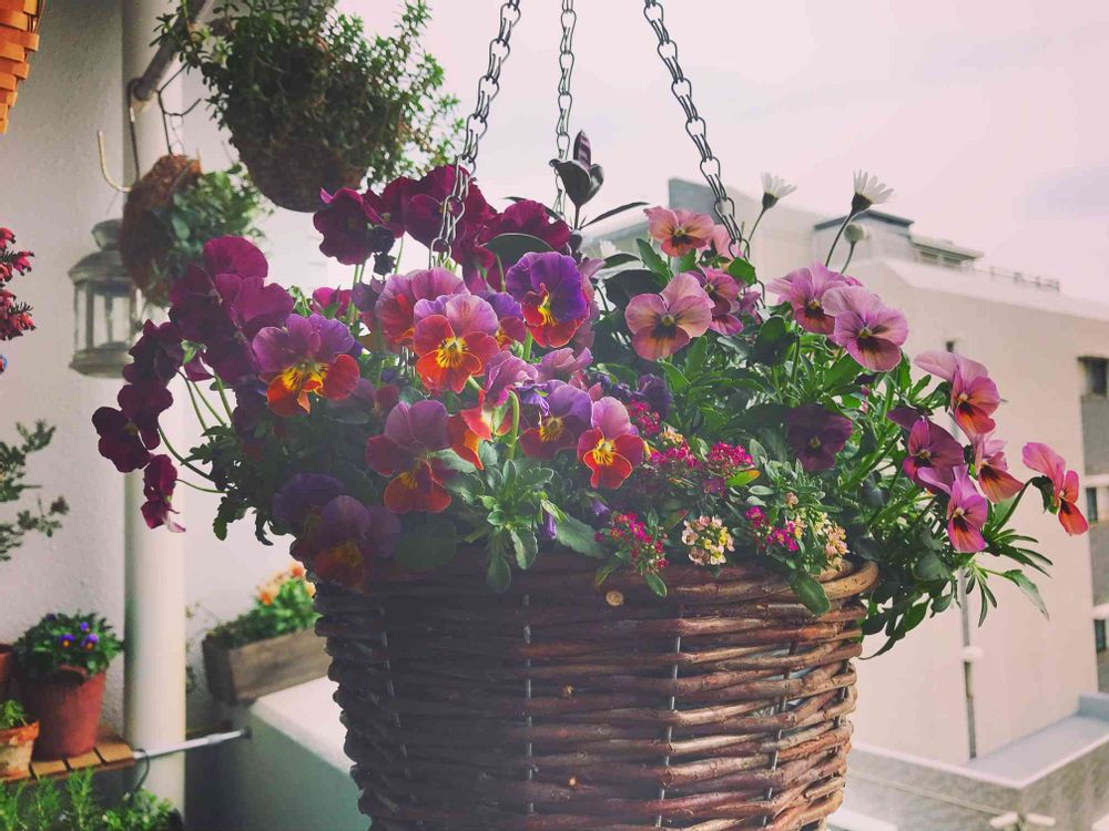 ハンギングの中のビオラが溢れるように咲いてくれています😊✨