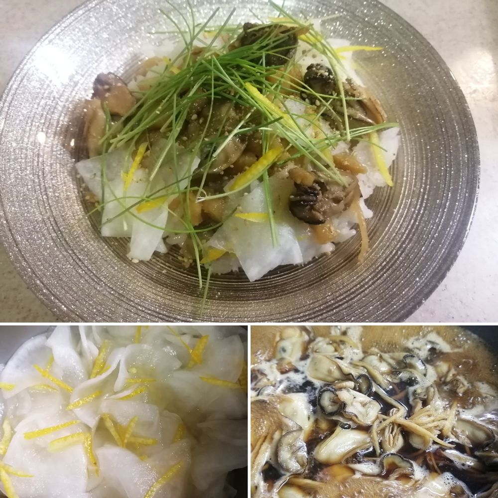 腎気を補う牡蠣と身体を温める生姜、胃腸を整える大根、氣を巡らせる柚子の薬効を活かした冬のひと皿♪。.:*・゜