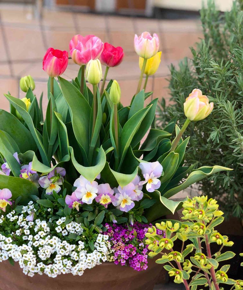 アーリースマイルチューリップ,ユーフォルビアアスコットレインボー,花のある暮らしの投稿画像