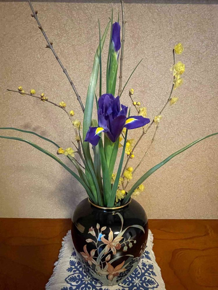 ロウバイ💛とアイリス💜の生花💐シックで素敵です🥰