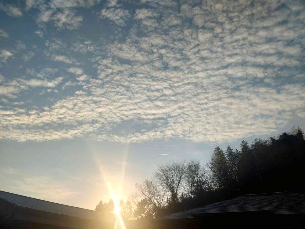 うろこ雲とお日様のヒカリ、飛行機雲✈️