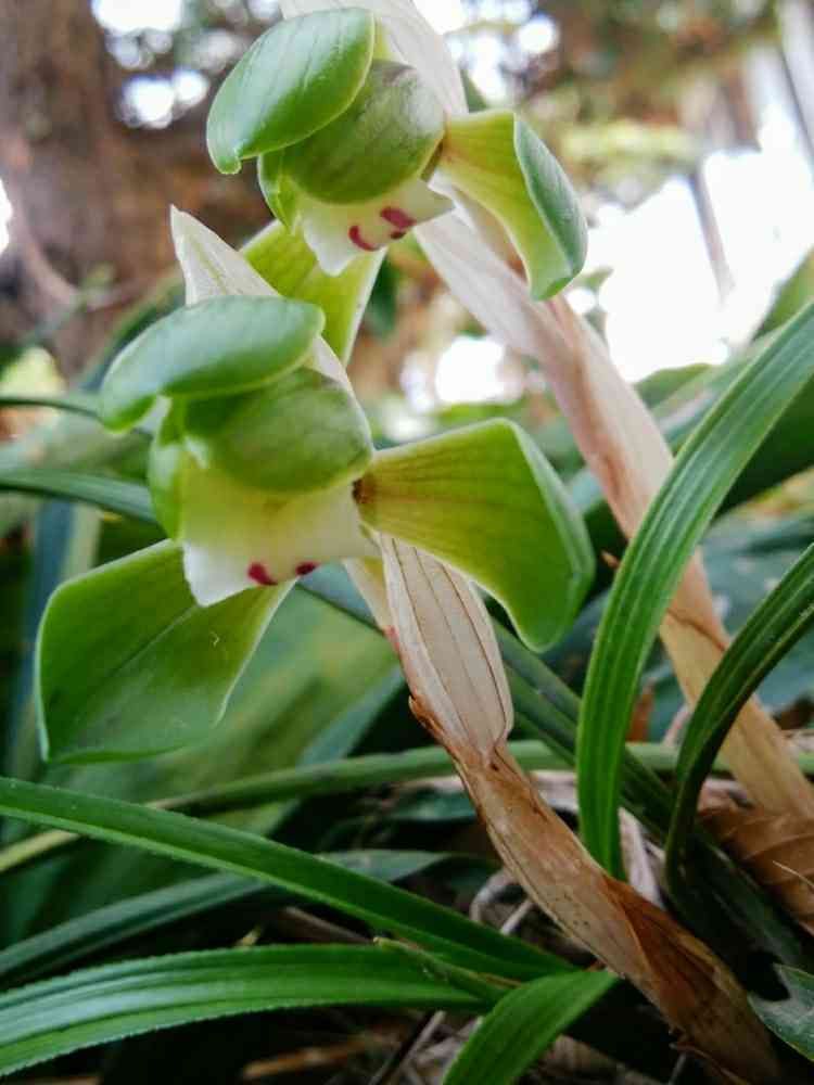 松の木の下で日本春蘭がひっそりと咲いています!