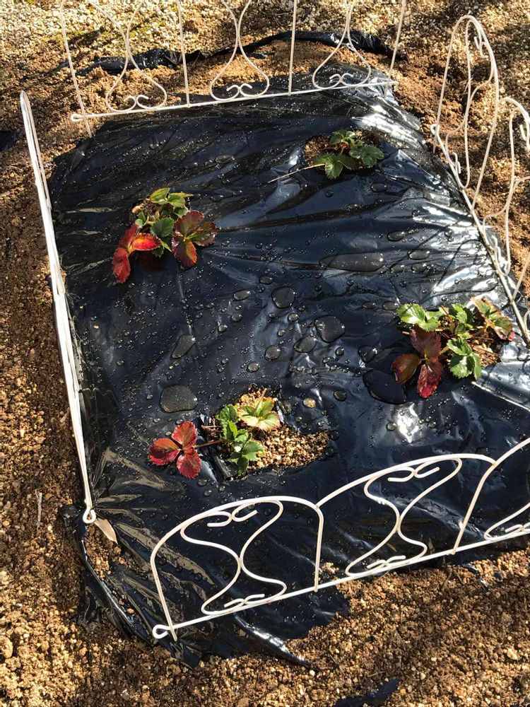 昨年のランナーから取っておいた4株のいちごの苗に、根が乾燥しないように黒のビニールをかけました。今は休眠期らしいです。