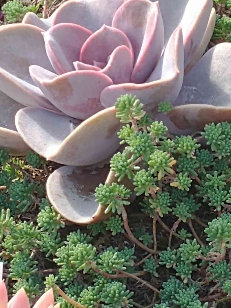 マンネングサの緑の中に、花のようなエケベリア🌺