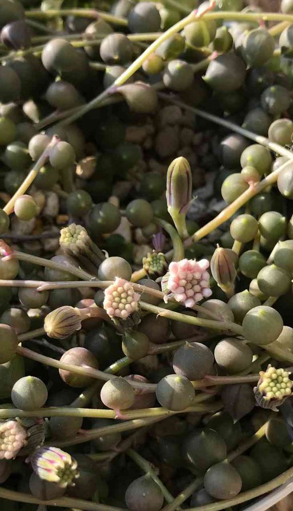 前に茶色になってしまったグリーンネックレス😢と投稿しましたが、なんとか酷くならずにいます。根元を見ると緑色してました☘️プリプリ感は元に戻り今はプリプリしてます✨花も少し開いてきてます🌼