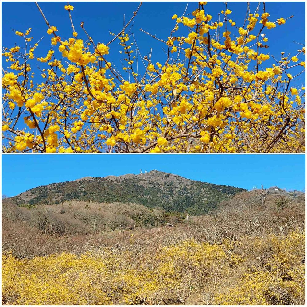 筑波山⛰️(男体山·女体山)をバックに咲き誇る🌟ロウバイ💛💛💛の爽やかな香りにうっとり😍💖