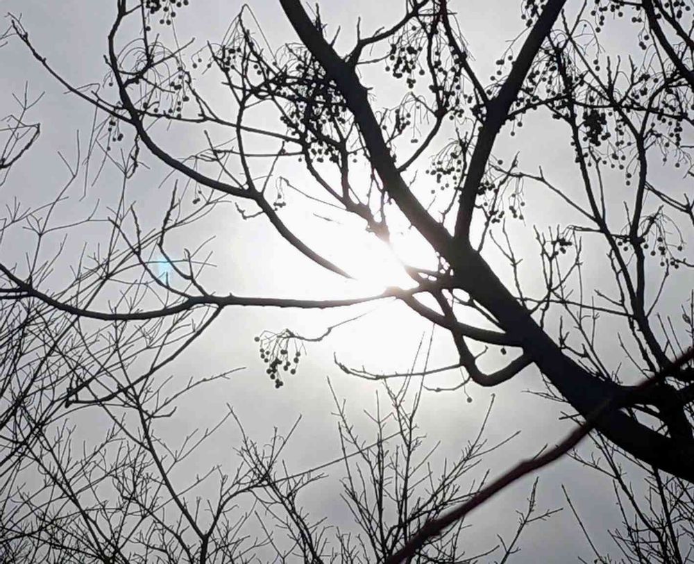 午後2時過ぎ、栴檀の木の向こうで、もう日が西に傾き始めました。