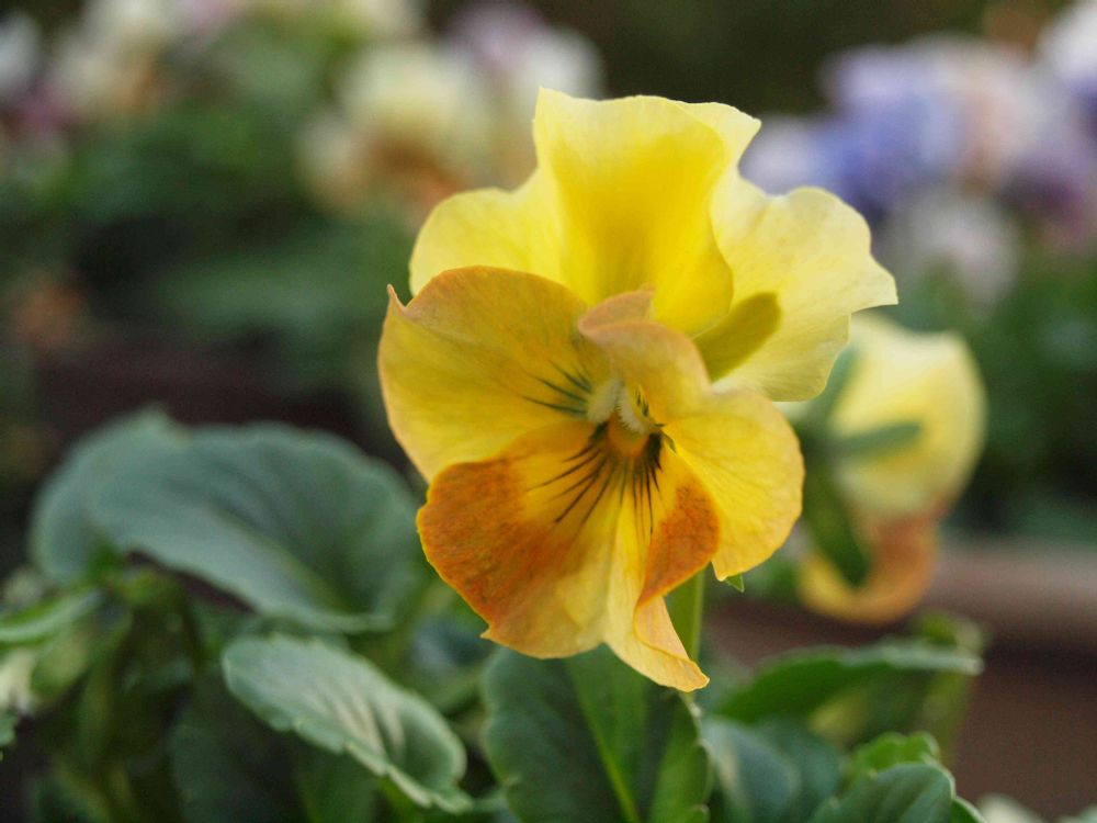 こっくりした黄色と赤茶、優しいフリルが美しいビオラです。