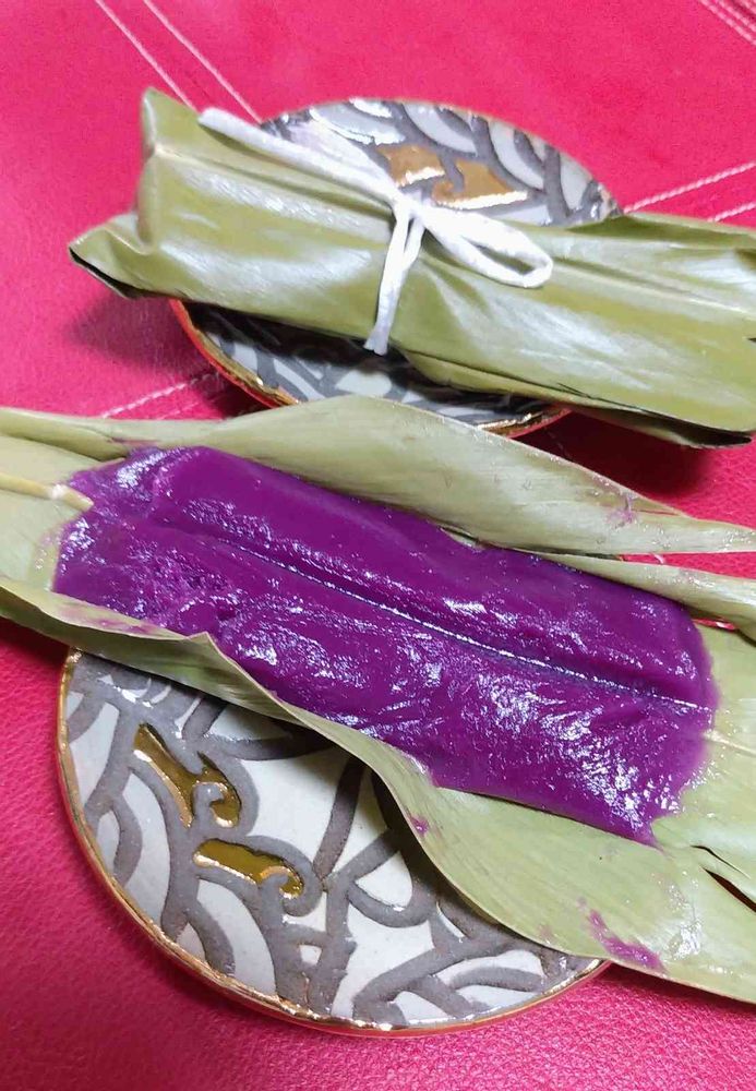 月桃の香りがぷんぷんするよー!(o^^o)これは紅イモムーチー(o^^o)とても美味しかったよーん💜💜💜