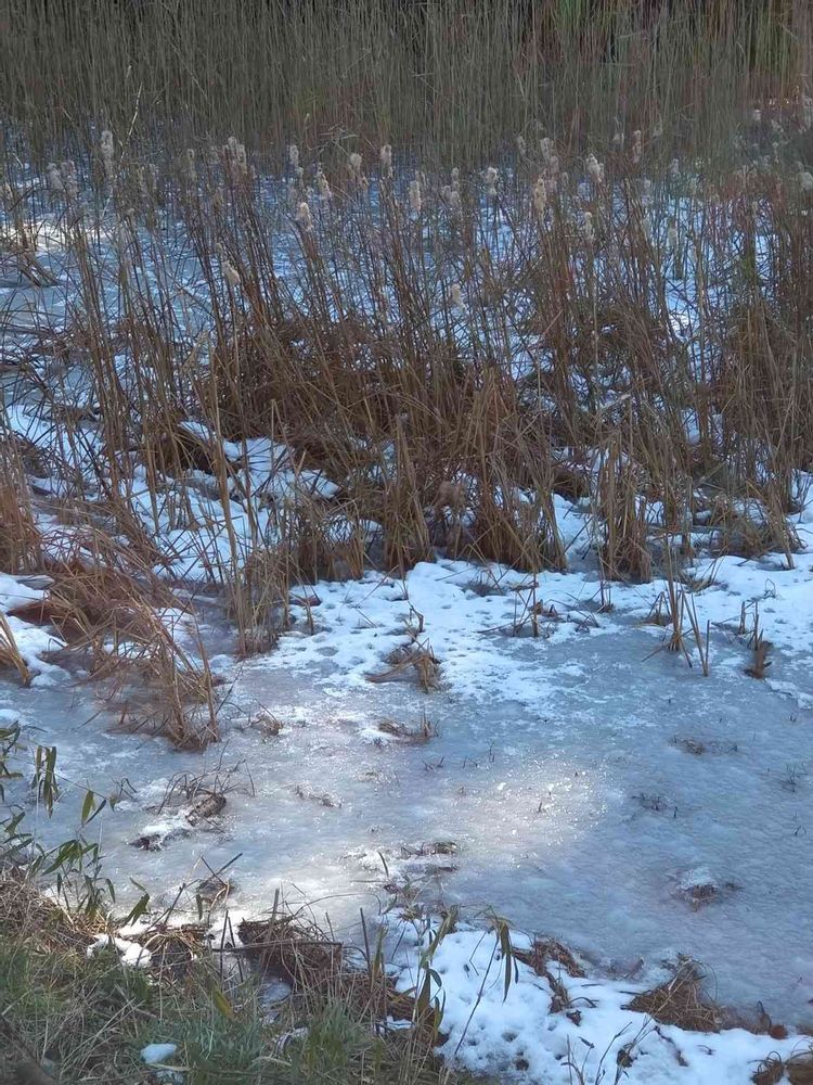 街中では雪も溶けたのに森林公園の沼は凍って雪が未だ溶けていません。