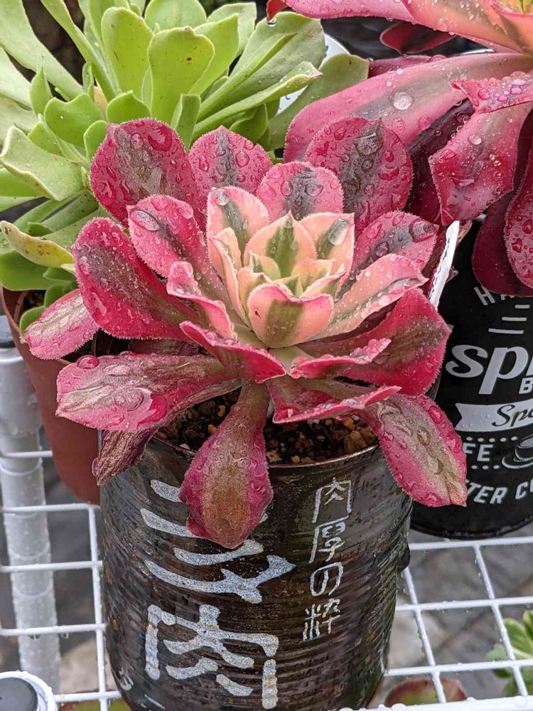 ジブい缶がね 色もワードも好みで何とも言えないの😍アエオニウムはチョー元気がもらえるの💕ありがとう🎶