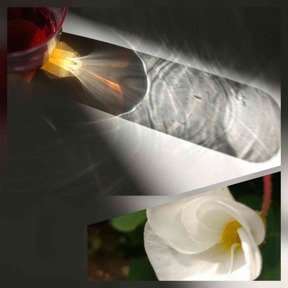 上は、赤いグラスに射し込んだ冬の光が、思わぬ影を作り出しました。