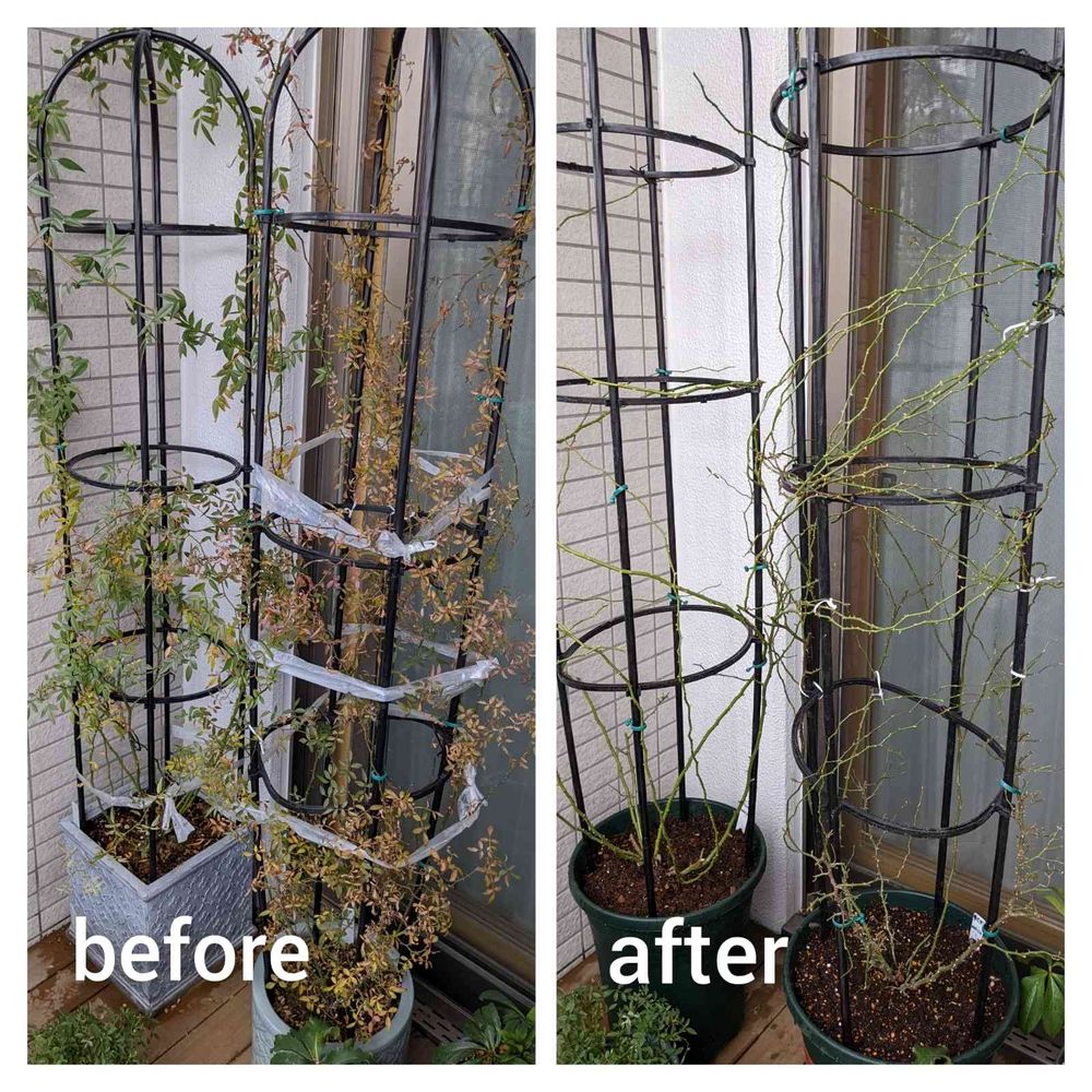 昨日やっとミニつるバラのお手入れが完了しました😁