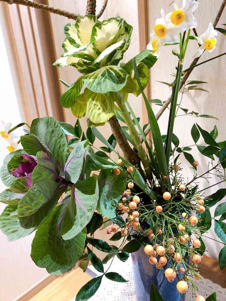 入りきらなかったけれど、南天は赤と黄色(白?)が生けてあってステキでした。