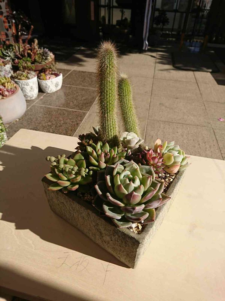 サボテン植えるなら、ましかくな浅鉢がいかもね🎵