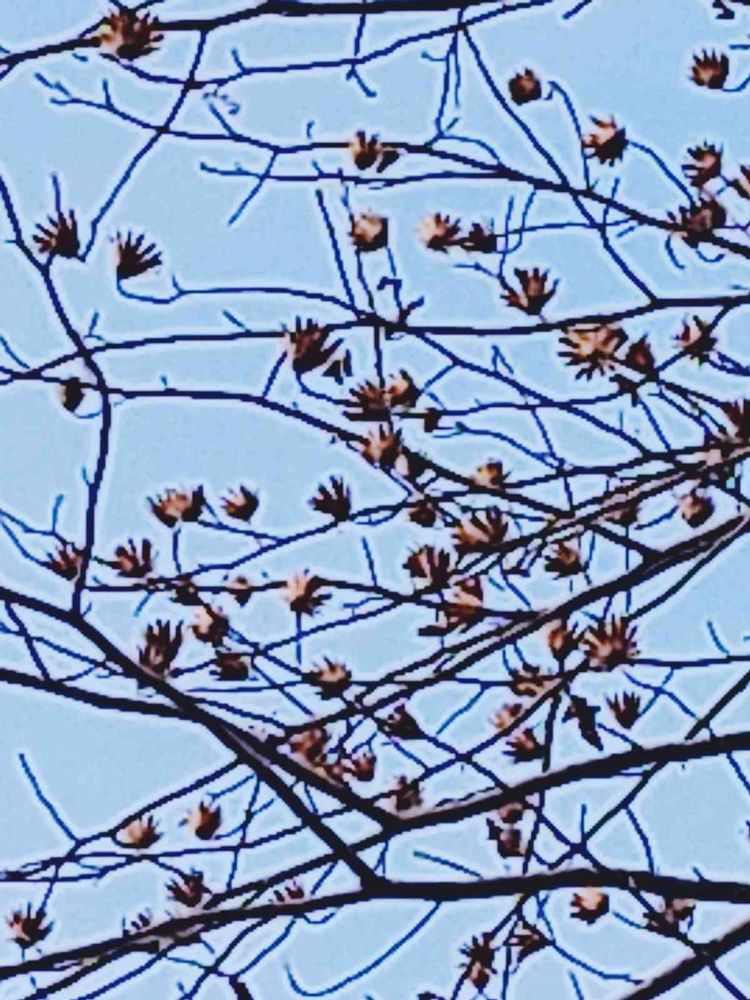 この花殻は偶然残ったのかな?それとも葉の落ちた季節は毎年見る事ができるのかな