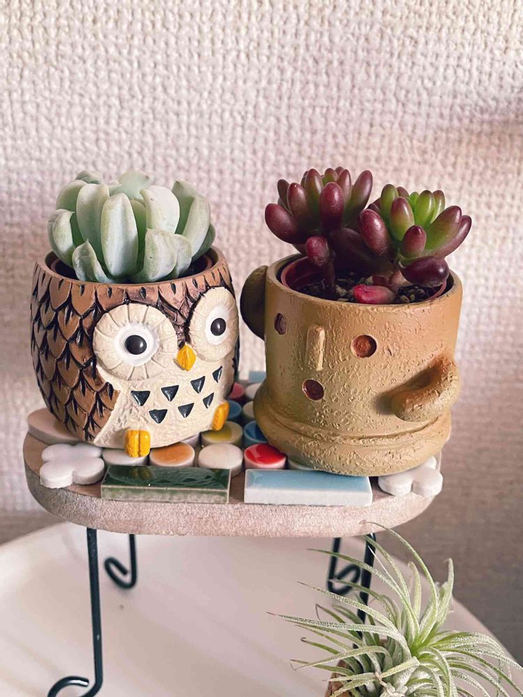 フクロウさんとハニワさんの植木鉢…可愛らしいですね(*/>∀︎<)/💖多肉ちゃんとの相性もバッチリ👌