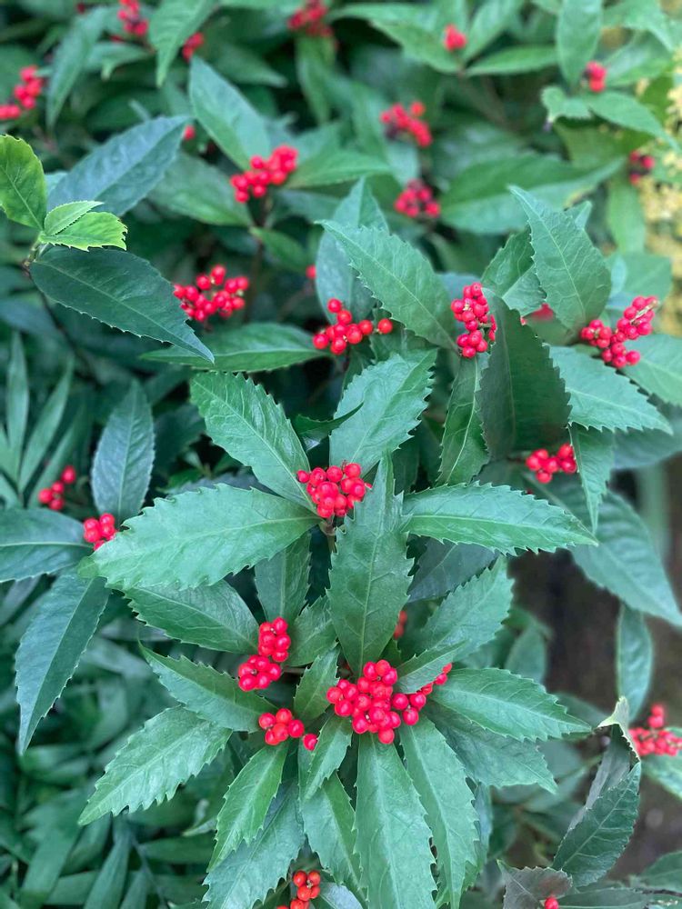 今日のお花、千両。みどりと赤のコントラストが良い感じ❤️💚