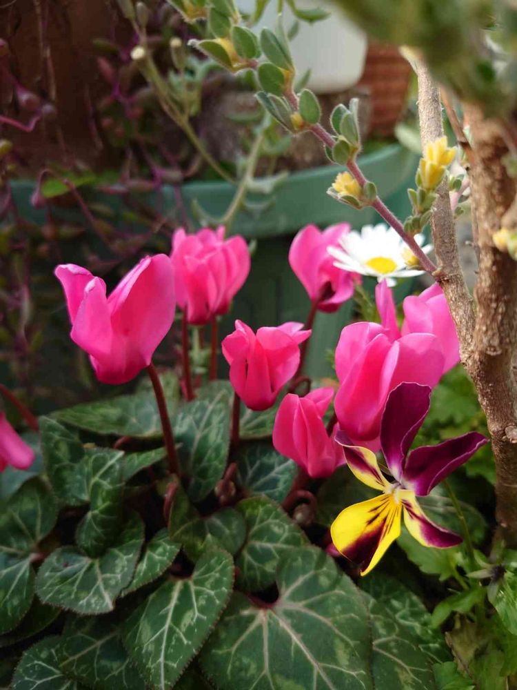 別の鉢植えのガーデンシクラメンも咲いてきてますが、白いのはまだやっと蕾が見えてきたところです😄