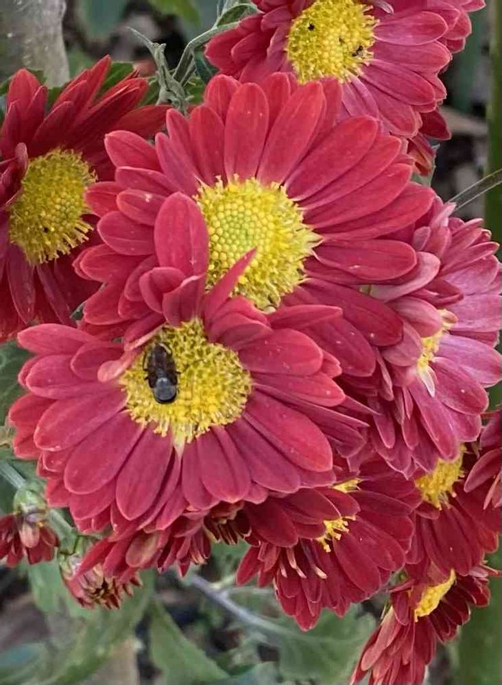 おはようございます! 菊❣️ 種類は分かりません💦鮮やかで綺麗です、虫さんも好きみたい🥰