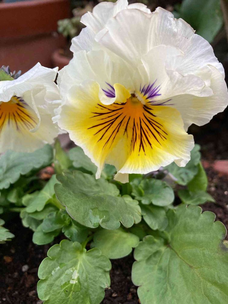 フリルと少しの紫と黄色がアクセントで素敵なパンジーさんですね💖✨