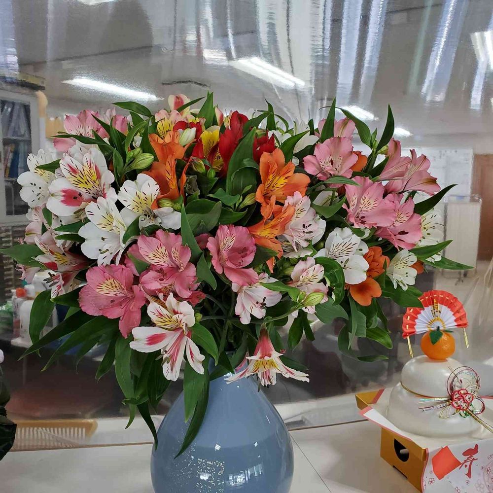 さて、特にお花もない時期ですが、義母の施設のカウンターに飾られていたアルストロメリアが、綺麗に飾られてました。