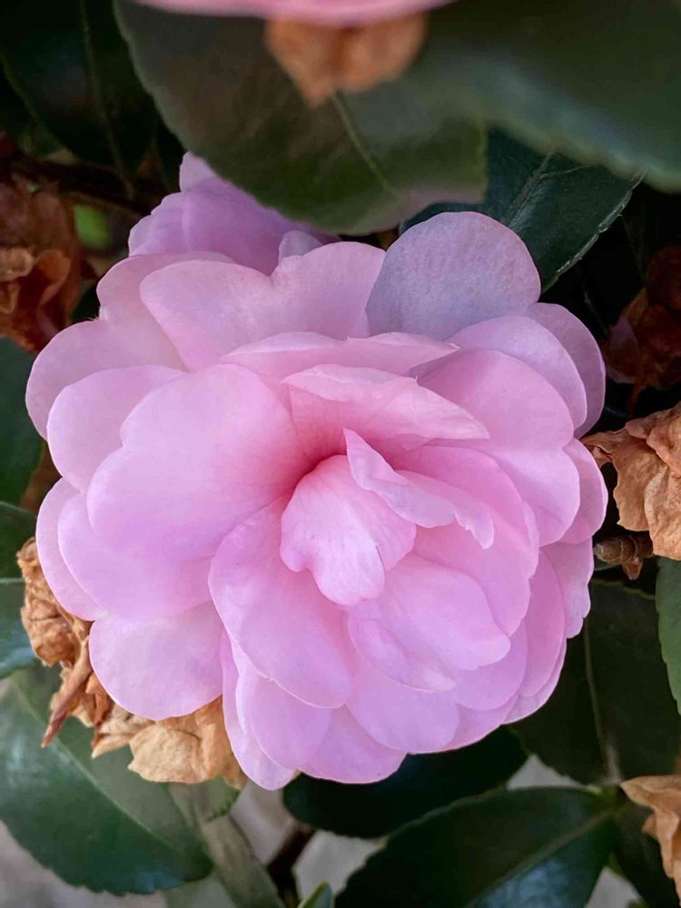 八重のサザンカの花
