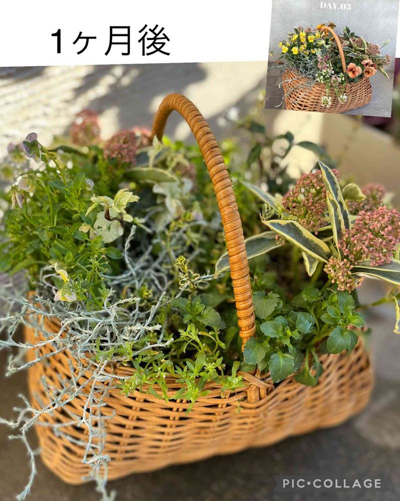 初めて作ったブリコラージュフラワー(寄せ植え)です🔰1ヶ月経ち、ビオラのお花がなくなってしまいましたが、第二弾開花待ち。