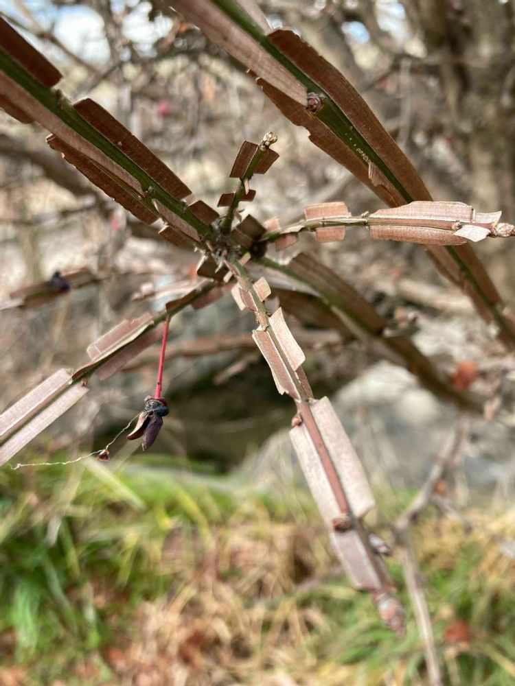 ニシキギ特有のコルク質の羽がバキバキと現れてカッコいいです✨…でもちょっと重そう。。