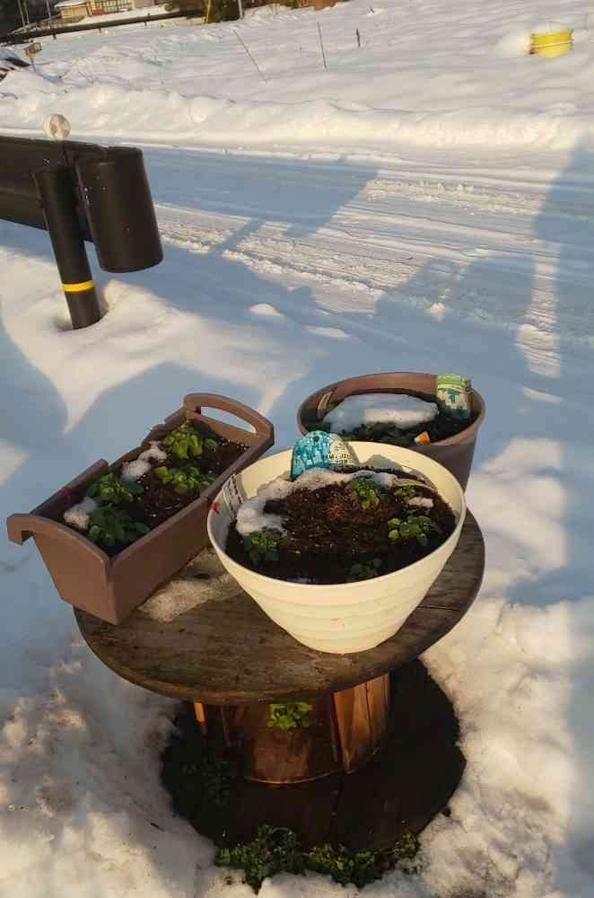 鉢の2倍程積もり⛄️、この後ハウスに!👋😁