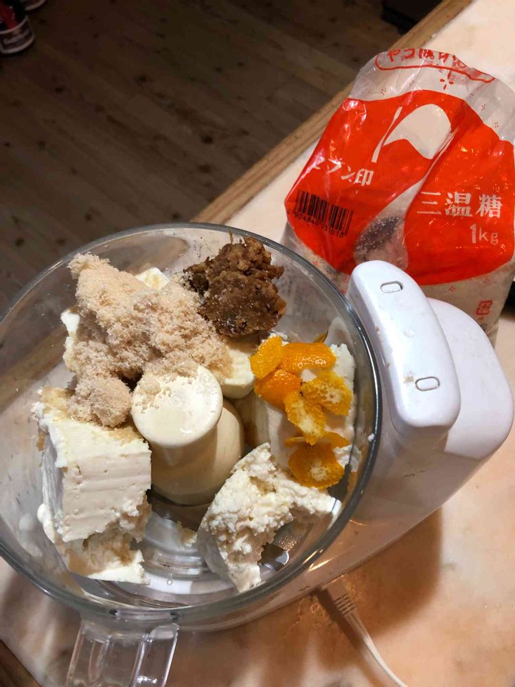 豆腐1丁に、今日は、味噌と三温糖と柚子です。