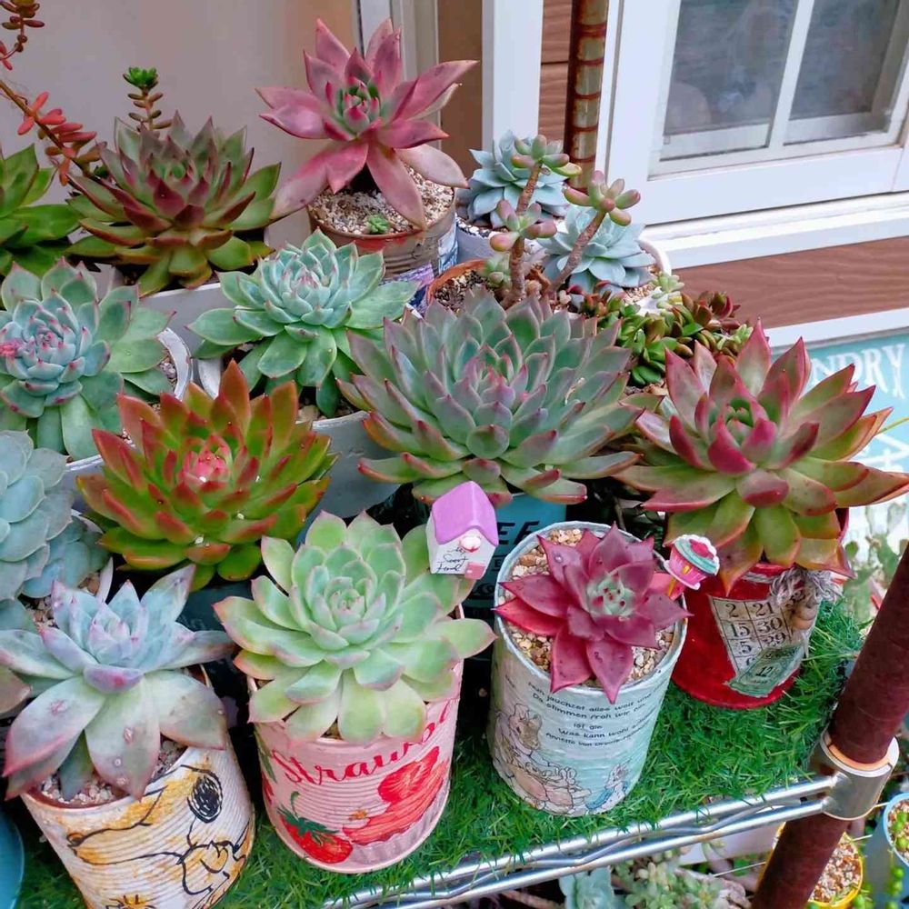 寒い中でもリメ缶からはみ出るくらい元気モリモリのエケベリアたち💕💕💕