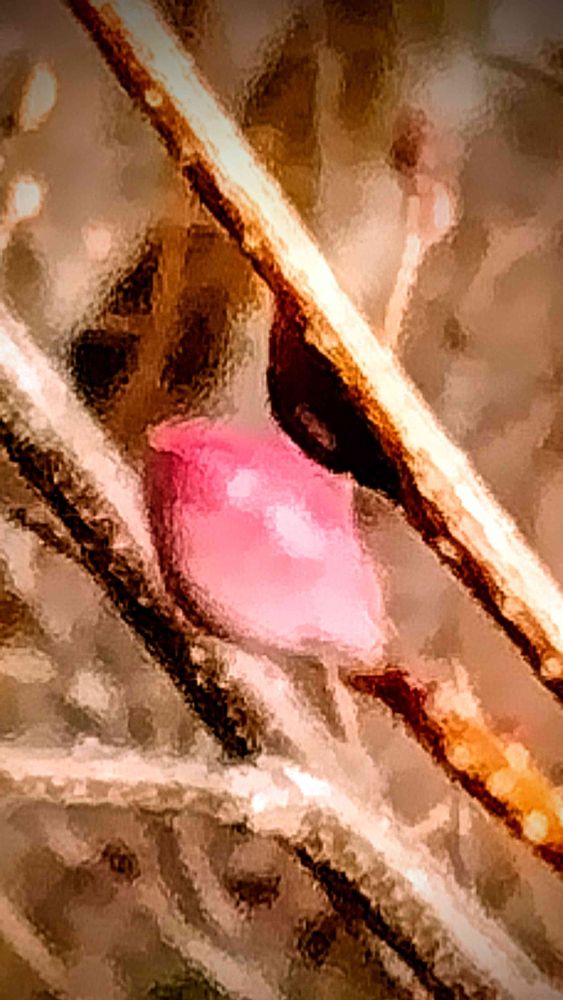 何の芽かな?小さくて、ほんのりピンクで艶ピカしてる💕可愛いなぁ