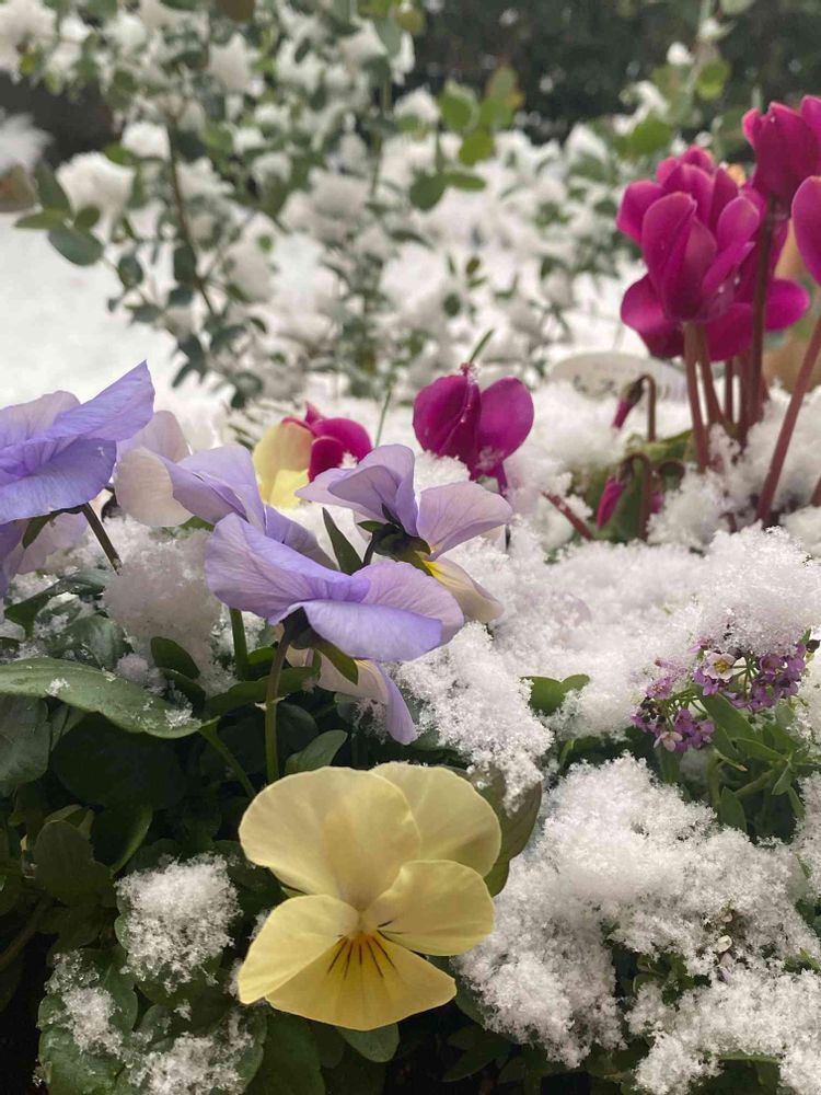 先日の初雪の日の庭の鉢❄️すぐに溶けそうだったので急いでパチリ📷キレイだったなあ❄️