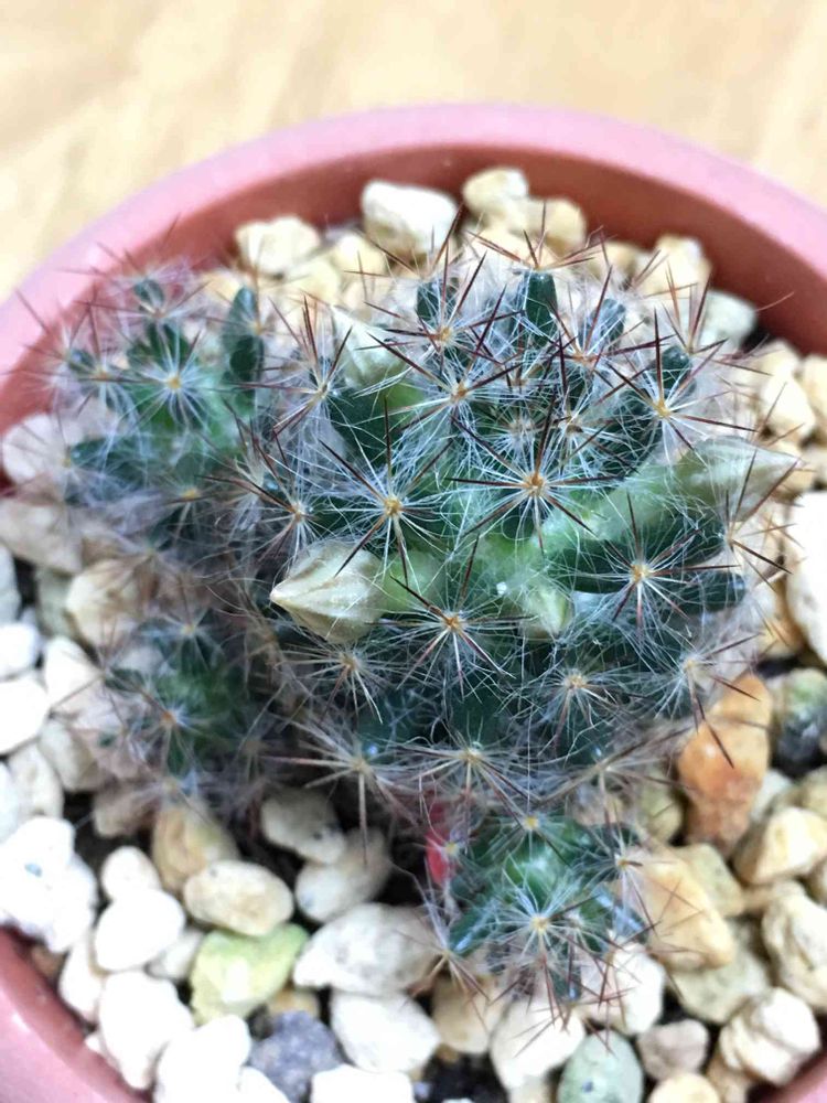 ダイソーのサボテン。確かマミラリアと札に書いてありましたが、すでにどこにいったのかわかりません。500円玉くらいの大きさですが蕾が5つ付いている(^ ^)