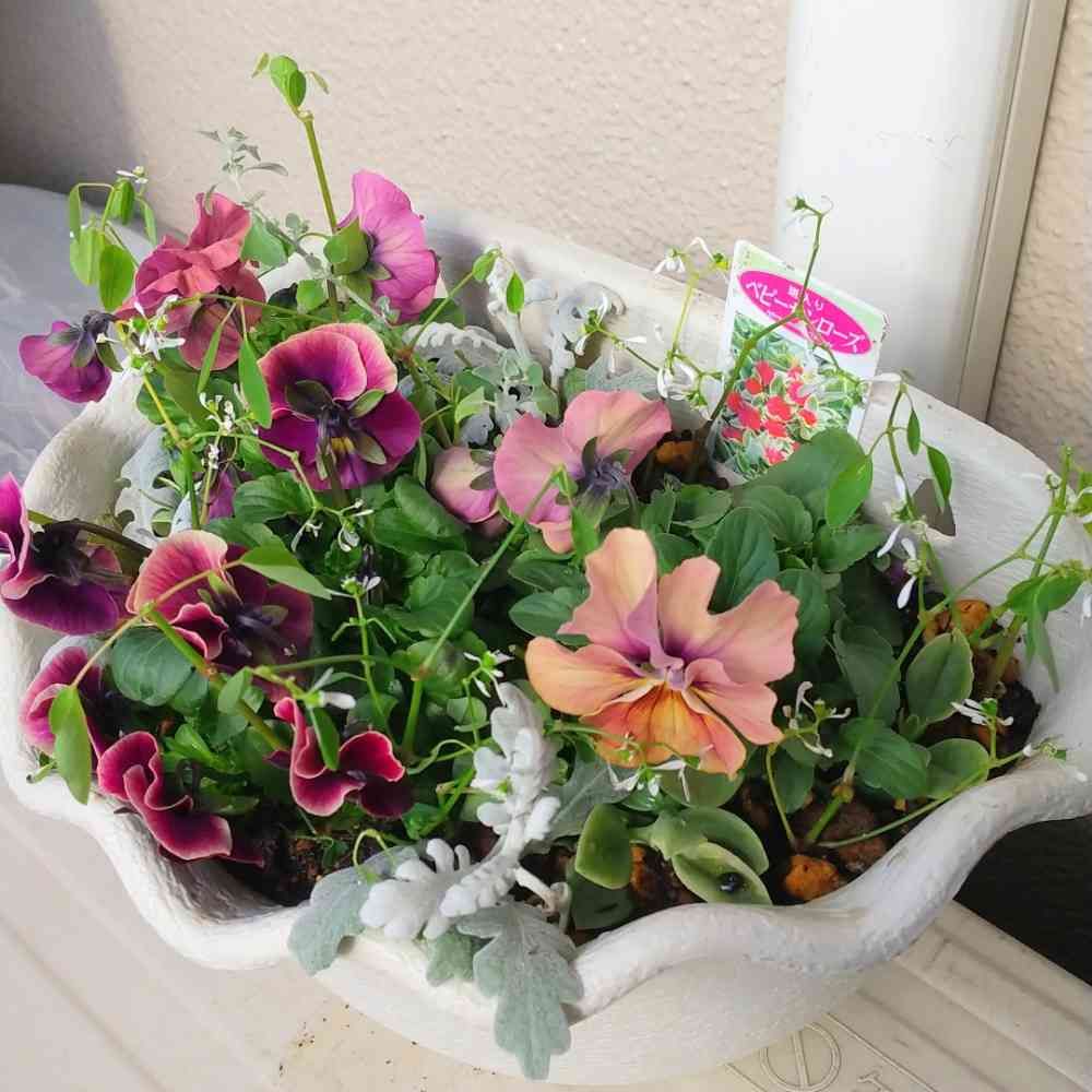バルコニー/ベランダ,シロタエギク,パンジー・ビオラの投稿画像