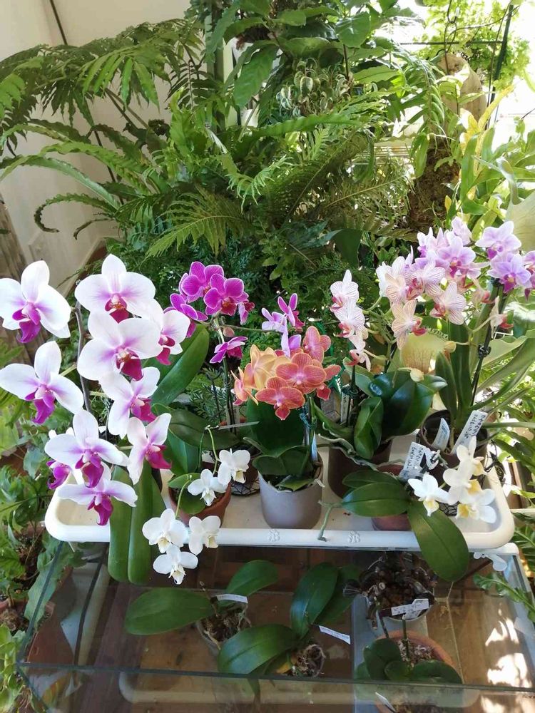 昨年末にお迎えしたコチョウラン、全員集合📷。もう長いこと咲いている子はカット✂️して体力回復させないと…と、思いつつなかなか出来ずにおりますが😂今日、カットします!水槽の中の子はJAで買った¥100均一の売れ残りのもの。撮影会終わったらしっかり日を浴びてもらいましょ!