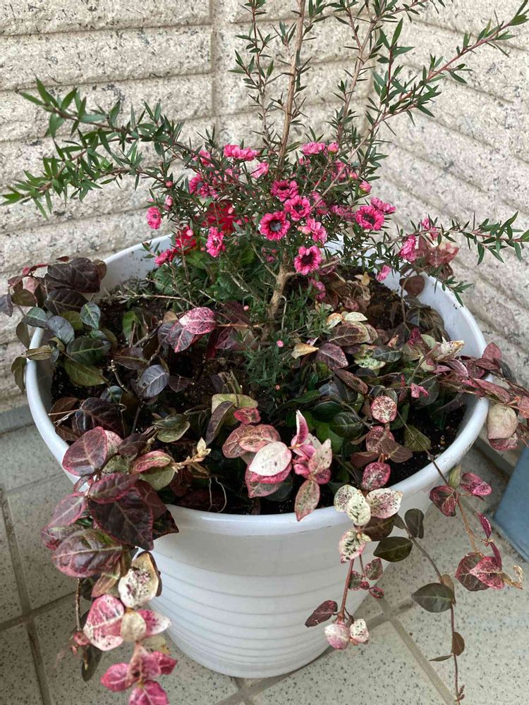 と思い紅葉した初雪カズラと寄せ植えにしました。