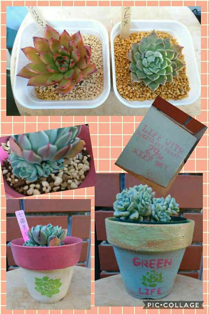 真ん中の右の写真はプラ鉢に色をつけたもの✨