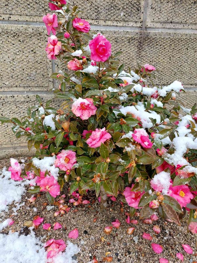 山茶花さん雪化粧されて恥ずかしそう(((*≧艸≦)