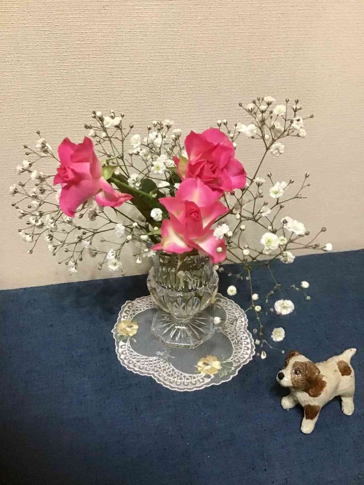 玄関,ミニ薔薇, かすみ草の投稿画像