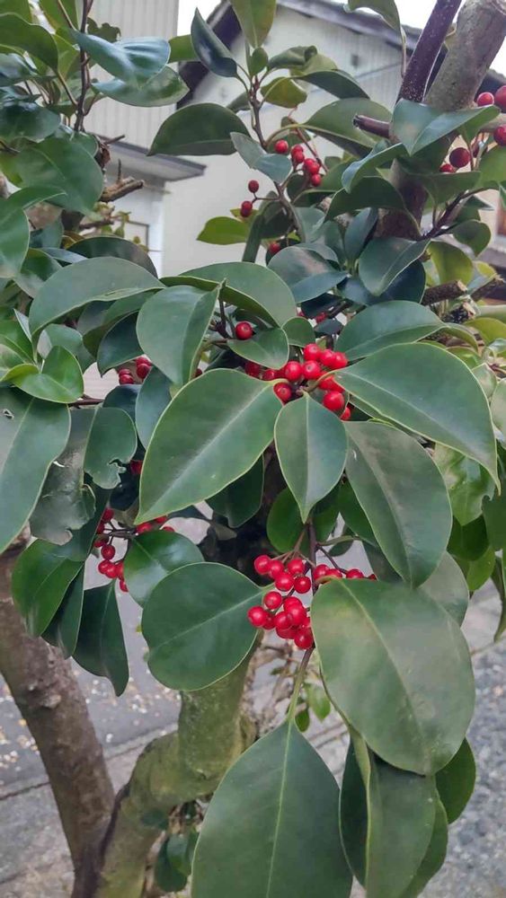 昨日行った整体院の駐車場に、葉っぱも青々として赤い実が綺麗な木がありました😊