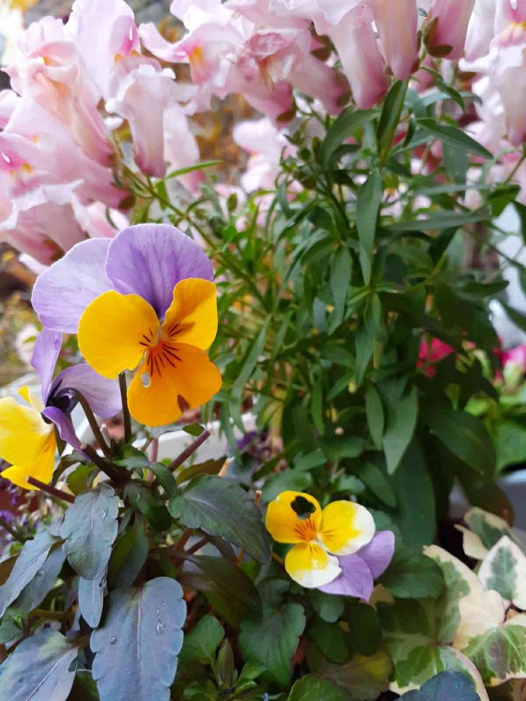 おはようございます🌸寄せ植えの金魚草は元気ですが