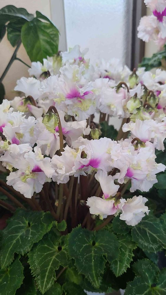 白いシクラメンと、濃いピンク混ざり具合が、可愛いです。