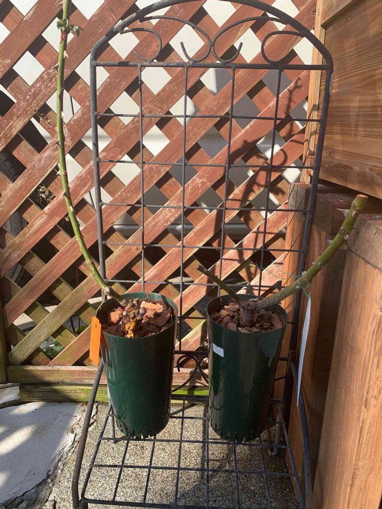 昨日の根癌バラ 新雪と 弱ってたディスタントドラムス 手入れして植え替え
