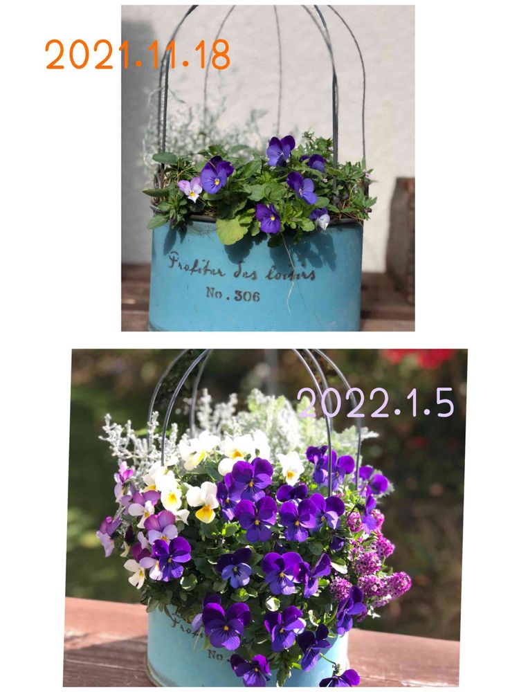 ‼️このビオラちゃんちょっぴり小ぶりのお花だったのでブリキ鉢にピッタリでした❣️
