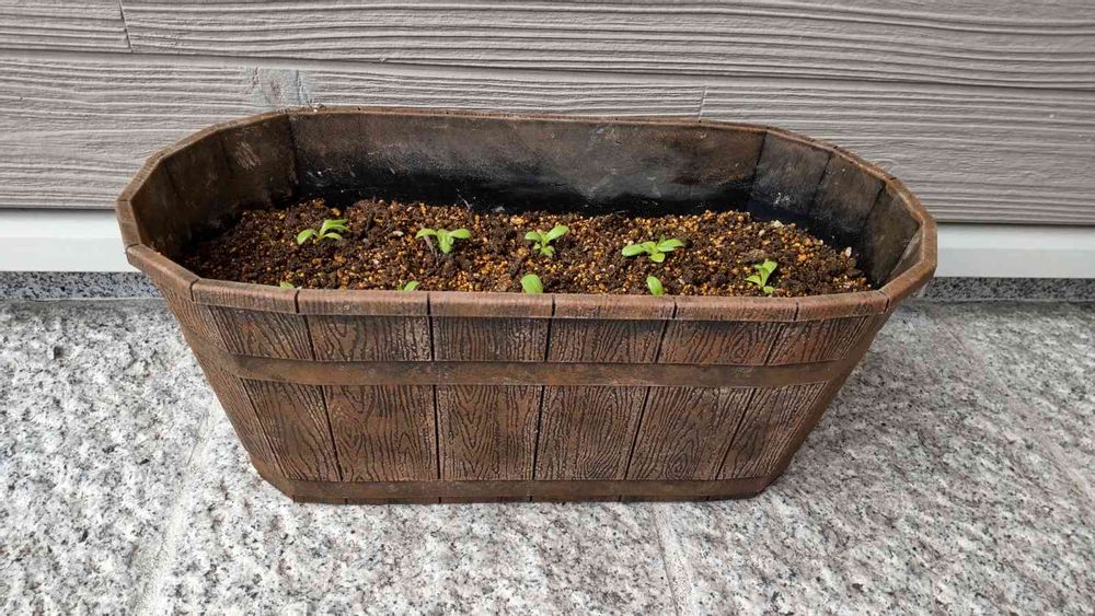 薄い紫色のトルコキキョウの苗を手に入れたのでプランターに植えました。