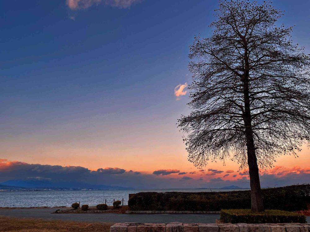 じつは湖岸を遠目に見る私鉄駅で路面電車に乗るつもりが、夕陽に惹かれて岸まで行ってしまいました^_^ゞ