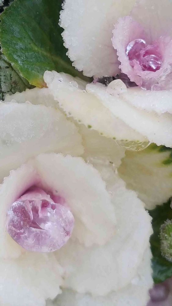 葉牡丹の白とピンクに、透明なガラスみたいな氷✨