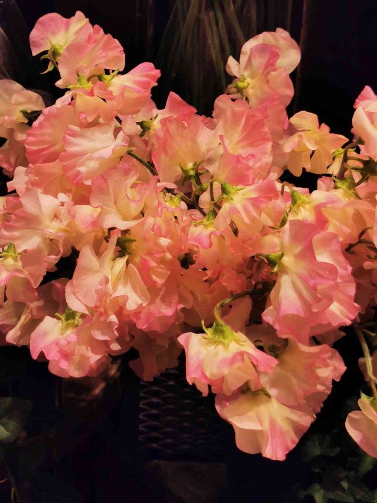 花屋さんには、色とりどりのスィートピーがありました。🌸